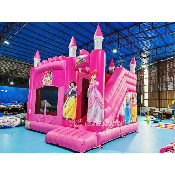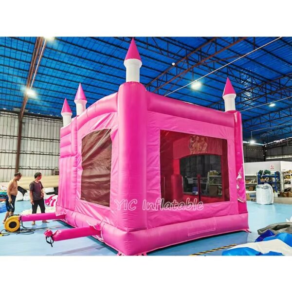 Commercial-grade inflatable Pink Bounce House with safety slide – durable construction for all ages